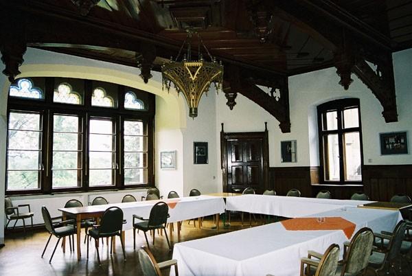 Die Zimmer des 1. OG sind ihrem Zweck entsprechend eingerichtet, werden teilweise als Privat- und Arbeitszimmer genutzt, etliche stehen leer und wurden seit ihrer Funktion als Altenheimräume wenig verändert. Im Erdgeschoss sind eine Bauernstube, ein weitere historistischer Saal sowie ein Restaurant untergebracht. Im Südflügel sind Balkendecken und Kreuzgratgewölbe aus dem 16. Jh. erhalten geblieben.